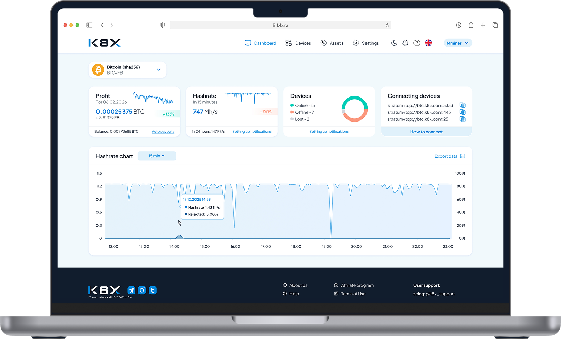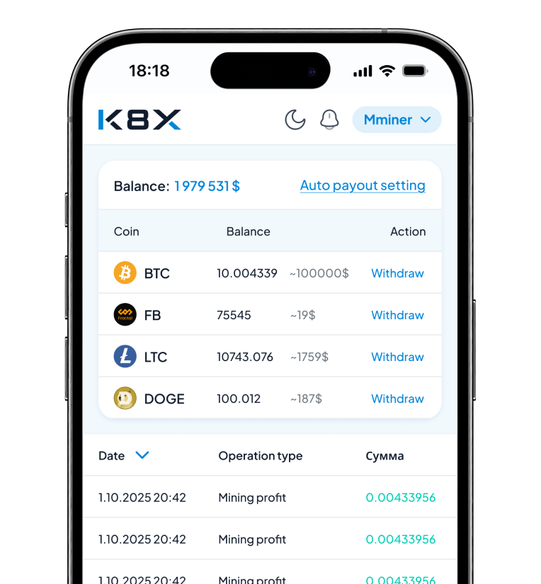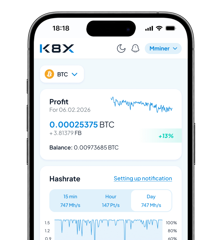 K8X is an infrastructure for stable equipment operation and transparent hashrate accounting.