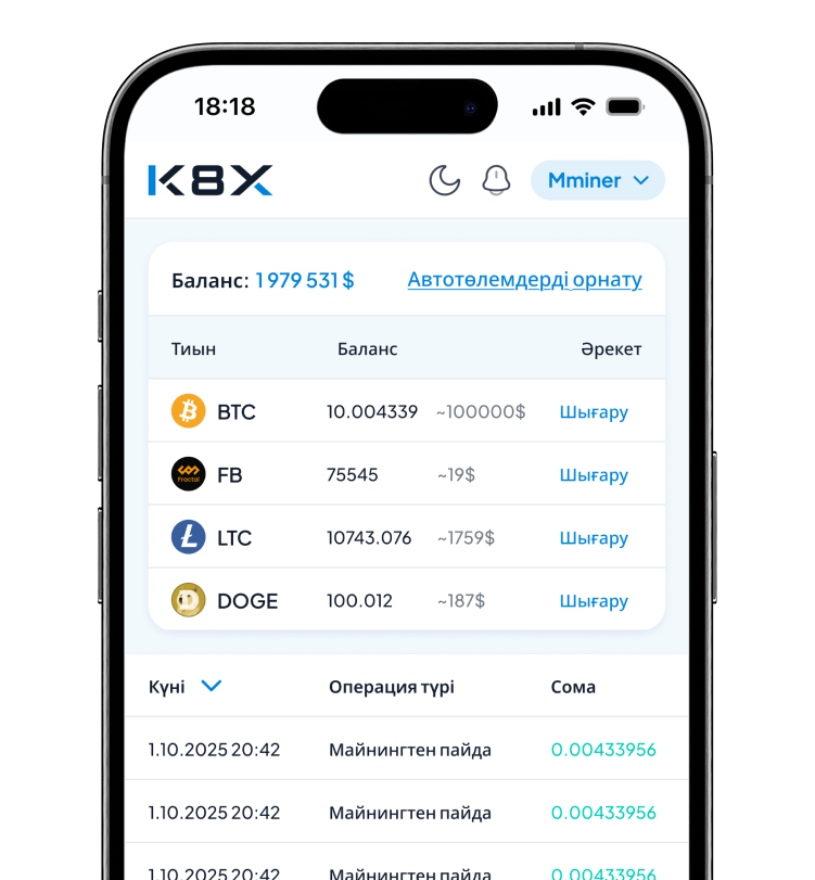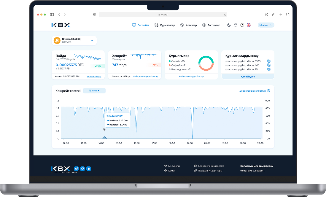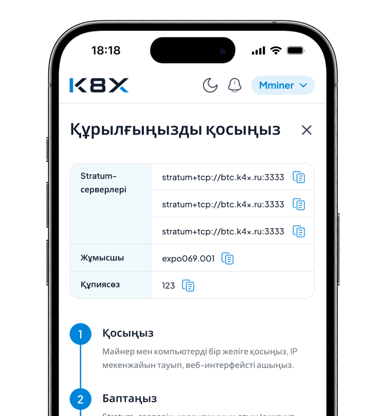 K8X-ке қосылыңыз және майнингті бастаңыз
